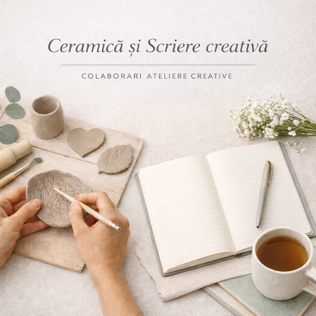 Vă invităm sâmbăta, 7 martie, la un atelier în care scrierea creativă şi lutul se vor îmbina în cel mai armonios mod - vom scrie poveşti atât pe foaie, cât şi în lut. Ne vom conecta la creativitatea noastră, intr-un ritm lent și firesc - o experiență completă, creativă şi relaxantă.